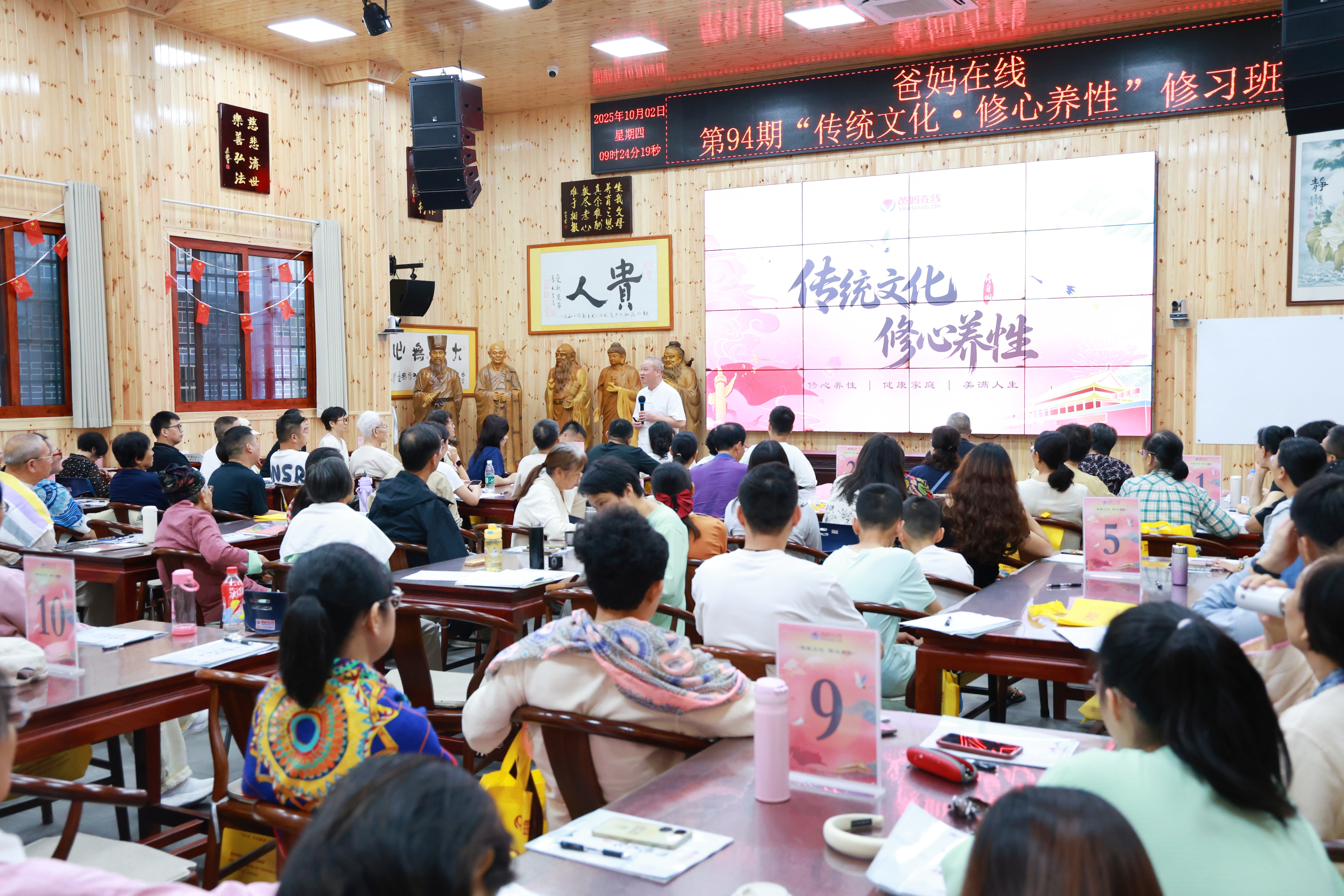 秋日的風,攜著桂子的清香,輕輕拂過禪心雅院的飛檐。覺悟堂內,一群從五湖四海奔赴而來的身影,帶著相似的期待——在紛繁世相中,尋一隅心安,覓一份生命的澄明。11月2日,爸媽在線第95期“傳統文化修心養性”