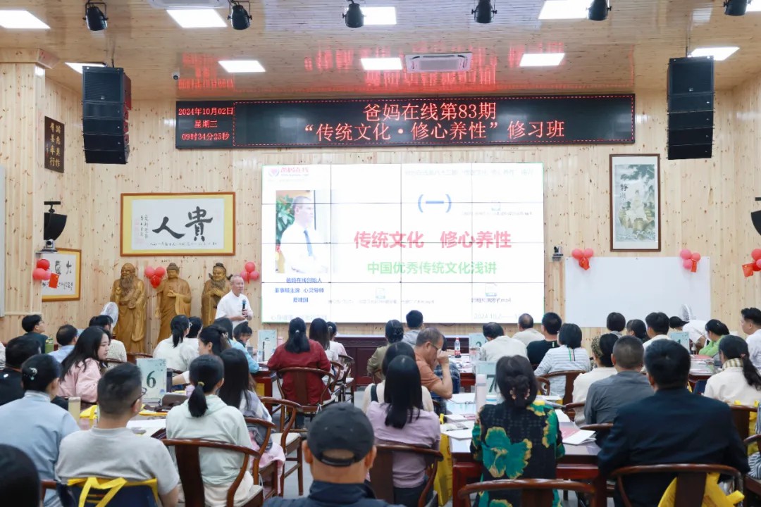 10月2日,陽光正好,微風不燥,爸媽在線第83期“傳統文化 修心養性”修習班在禪心雅院的覺悟堂緩緩拉開帷幕,這里座無虛席,每個人都懷揣著對智慧的渴望,開啟了一場心靈的探索之旅。