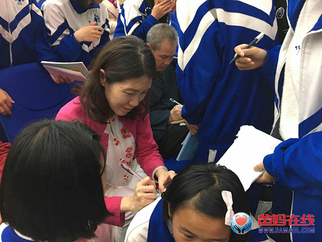 演講結束后,同學們依然戀戀不舍、圍著胡煜老師、楊萍老師、關幃云老師簽名留念,希望老師們能再次來學校講課。