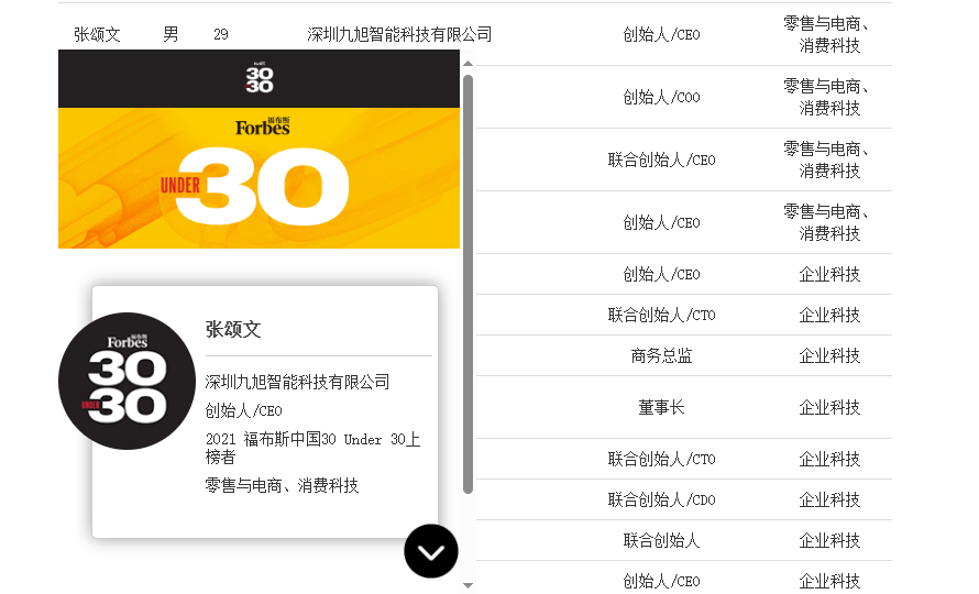 2021福布斯中國Under30上榜者