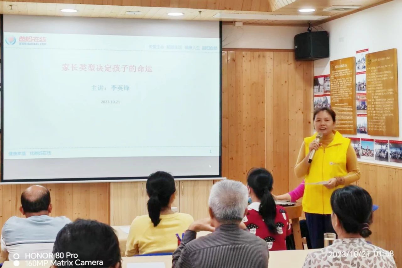 10月21日,南寧市爸媽在線心身健康咨詢中心在韋紅梅主任的組織下,繼續舉辦家庭教育公益講座。本次講座主題為“家長的類型決定孩子的命運”,由中心首席講師李英鋒老師主講...